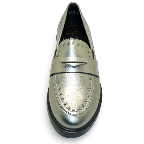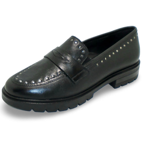 Available in 2 COLOURSMaterial: Leather (black) w/Stud DetailMaterial: Metallic Leather (pewter) w/Stud DetailInsole: "High/Soft" LeatherLining: LeatherOutsole: RubberHeel: 30mmSlip On StyleDesigned in Germany Made in India