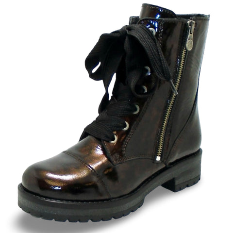 Canadian Brand Available in 3 COLOURS Material: Waterproof Patent Leather Insole: Plush Microfiber Lining: Plush Microfiber Outsole: Rubber with "Aquastop" breathable, waterproof membrane Rubber Heel: 30mm Side Zip & Laced Closures Made in Portugal Best Seller