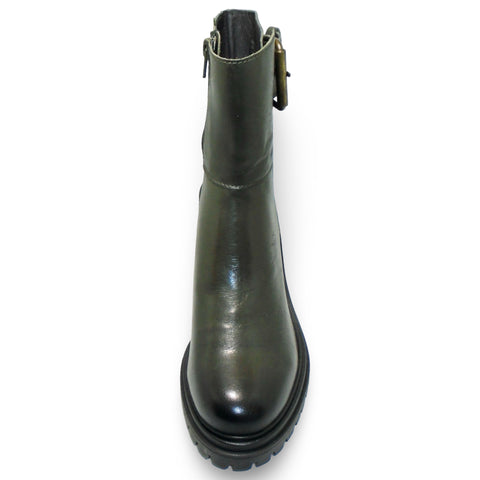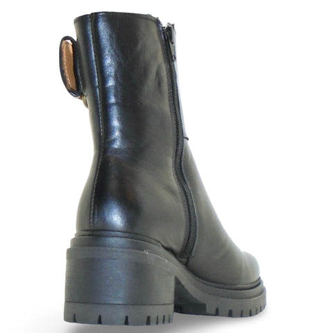 Available in 2 COLOURS Material: LeatherInsole: LeatherLining: Textile & LeatherLug Outsole: RubberHeel: 50mmSide Zip Closure Decorative Buckle
