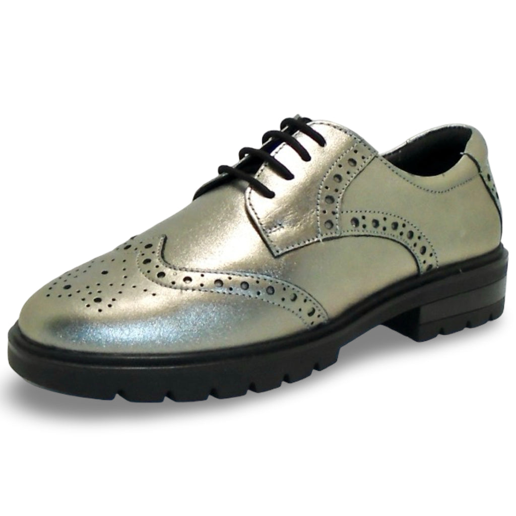 Available in 2 COLOURSMaterial: Patent Leather (black) Material: Metallic Leather (pewter)Insole: "High/Soft" LeatherLining: LeatherOutsole: RubberHeel: 30mmLaced ClosureDesigned in Germany Made in India