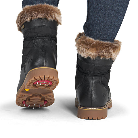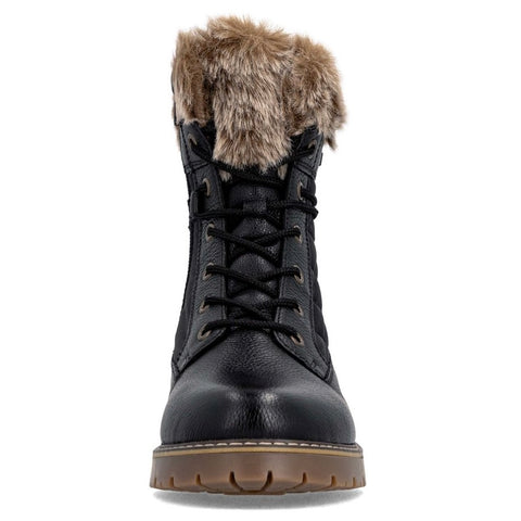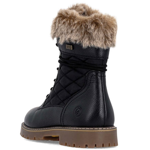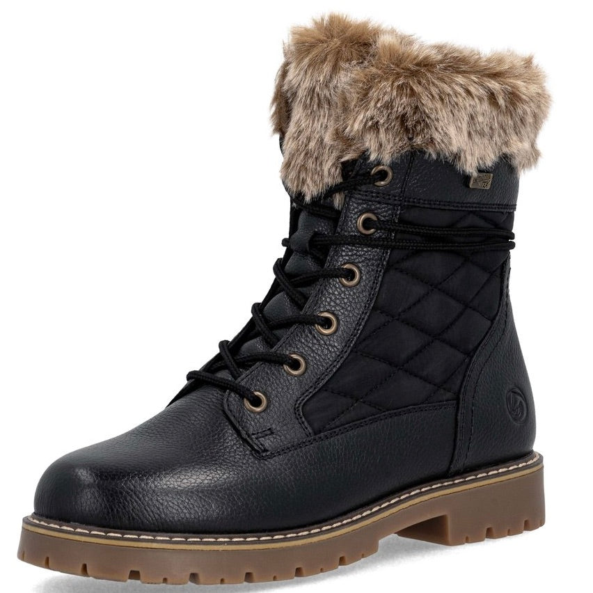 RemonteTEX Technology - Water Resistant Material: Leather & Textile w/Faux Fur CollarInsole: Remonte Thermo Wool/Foam Lining: Plush WoolOutsole: Rubber w/ Remonte Flip-Grip folding spikesHeel: 25mmSide Zip & Laced Closures