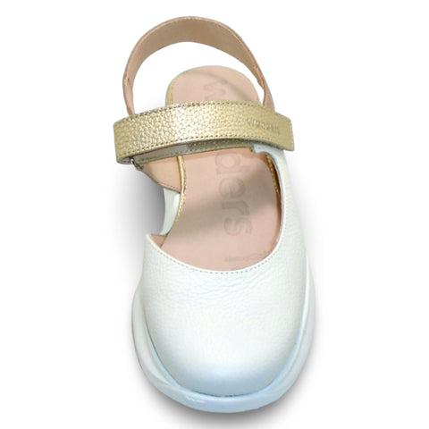 Available in 2 COLOURSMaterial: Pebbled Leather w/Metallic Lthr Trim Insole: Leather/Memory GelLining: LeatherOutsole: SyntheticHeel:50mm Front Platform: 30mm Velcro ClosureConstructed with WONDERSFLY TechnologyMade with love in Spain