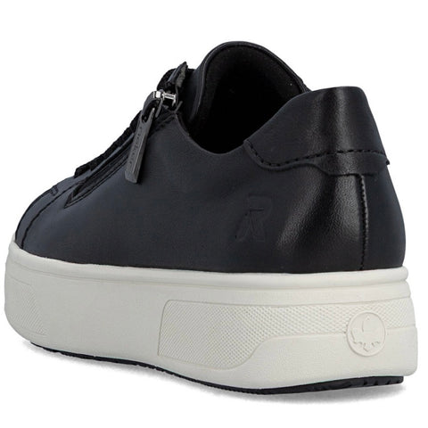 Available in 2 COLOURS Material: Leather & SyntheticInsole: NEW "Rieker Soft" Textile/Foam (removable)Lining: TextileOutsole: RubberPlatform: 30mmSide Zip & Laced Closures