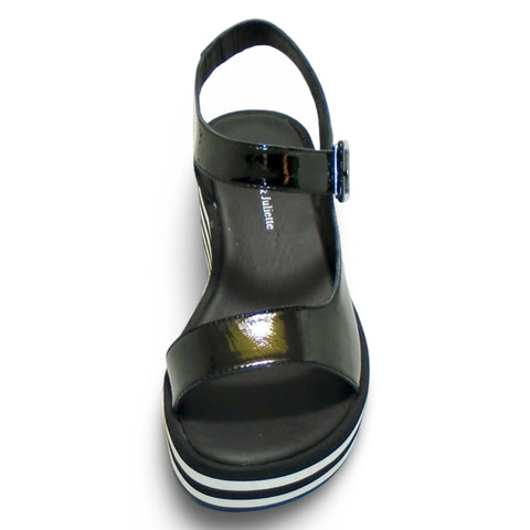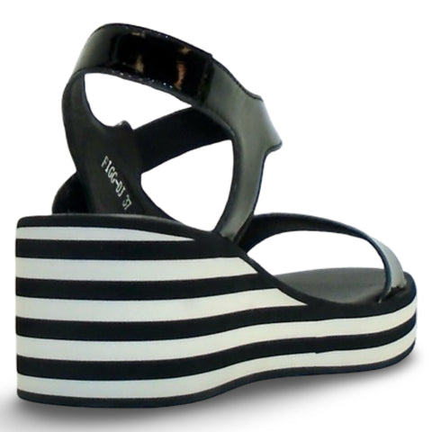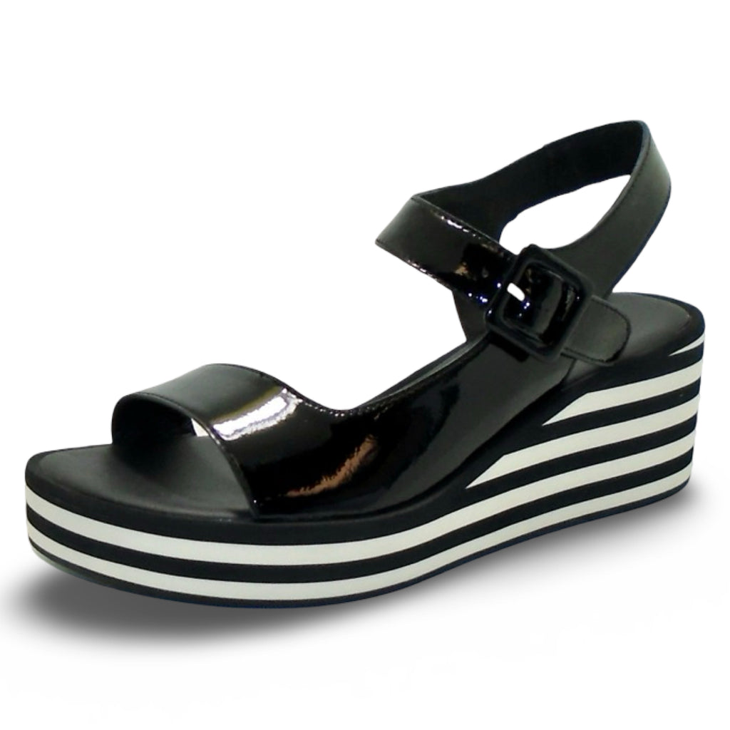 Available in 2 COLOURSMaterial: Patent LeatherInsole: LeatherLining: LeatherOutsole: Rubber "Buckled" Velcro Closure (adjustable)Platform Wedge Heel: 60mm Front Platform: 25mm