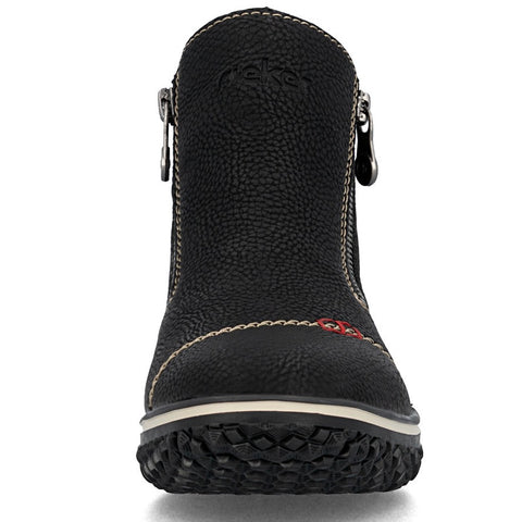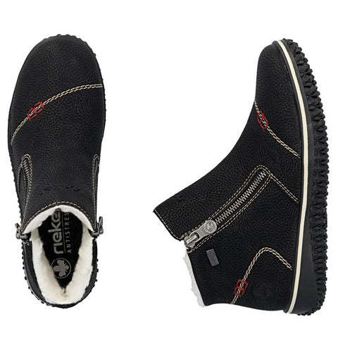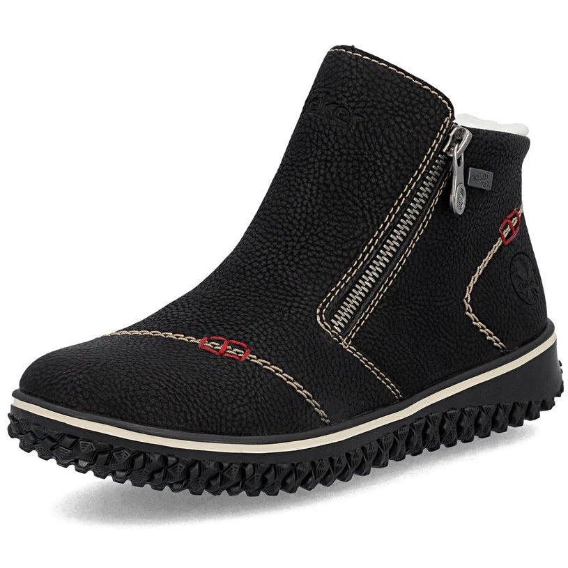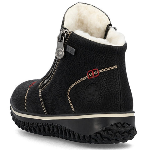 RiekerTEX Technology - Water ResistantMaterial: Synthetic Insole: Felted TextileLining: Plush Textile - Faux ShearlingOutsole: RubberHeel: 20mmDouble Side Zip Closures