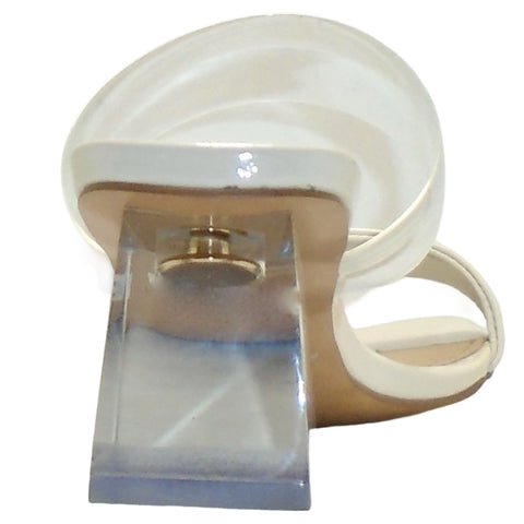 Available in 2 COLOURS Material: Patent Leather/Clear Vinyl Insole: Leather Lining: Leather Outsole: Synthetic Clear Lucite Block Heel: 50mm *Rubber lift gives the heel an illusion of colour, heel is clear lucite! Best Seller