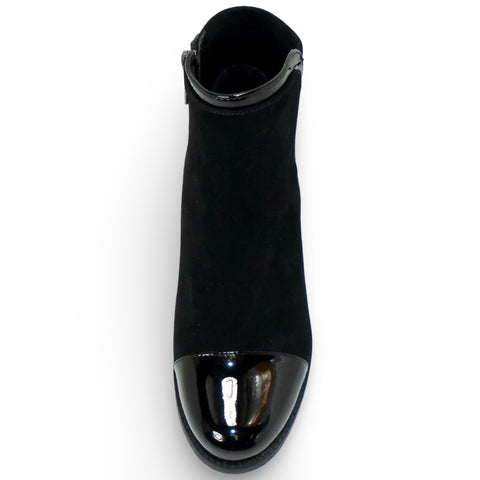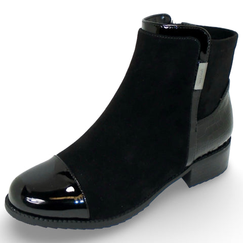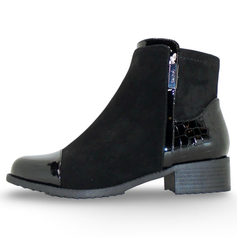 Material: Waterproof Suede w/Patent Trim (black patent/suede combo)